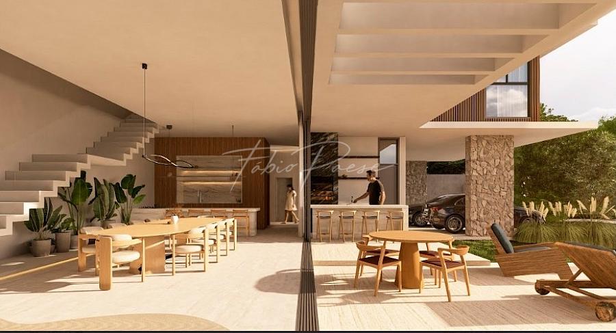 Projeto residencial de alto padrão, com arquitetura contemporânea, ambientes amplos e integração total entre áreas internas e externas.