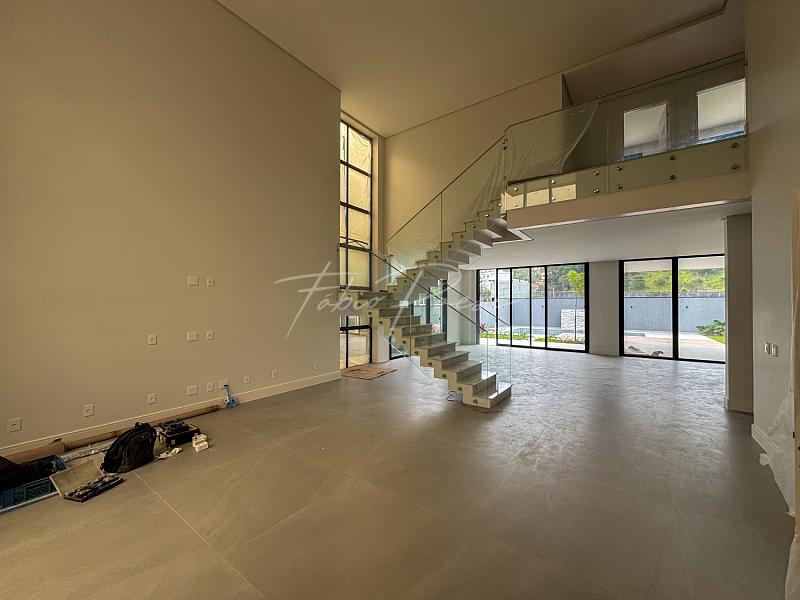 O piso inferior conta com pé direito de 3 metros, ampliando a sensação de espaço e sofisticação em todos os ambientes.