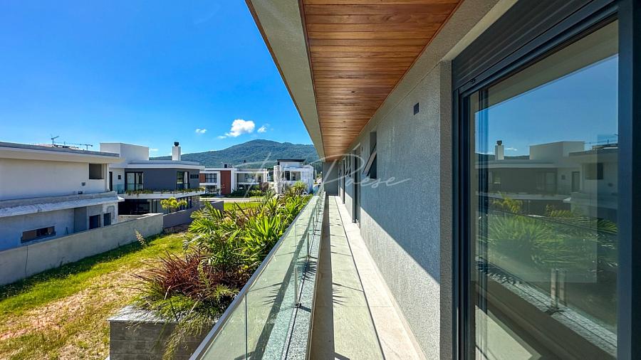🛌 4 suítes espaçosas, sendo 2 suítes master, com ambientes generosos, banheiros amplos e varandas integradas, que trazem luz natural e ventilação cruzada. As sacadas conectam o interior da casa à paisagem verde do bairro parque.
